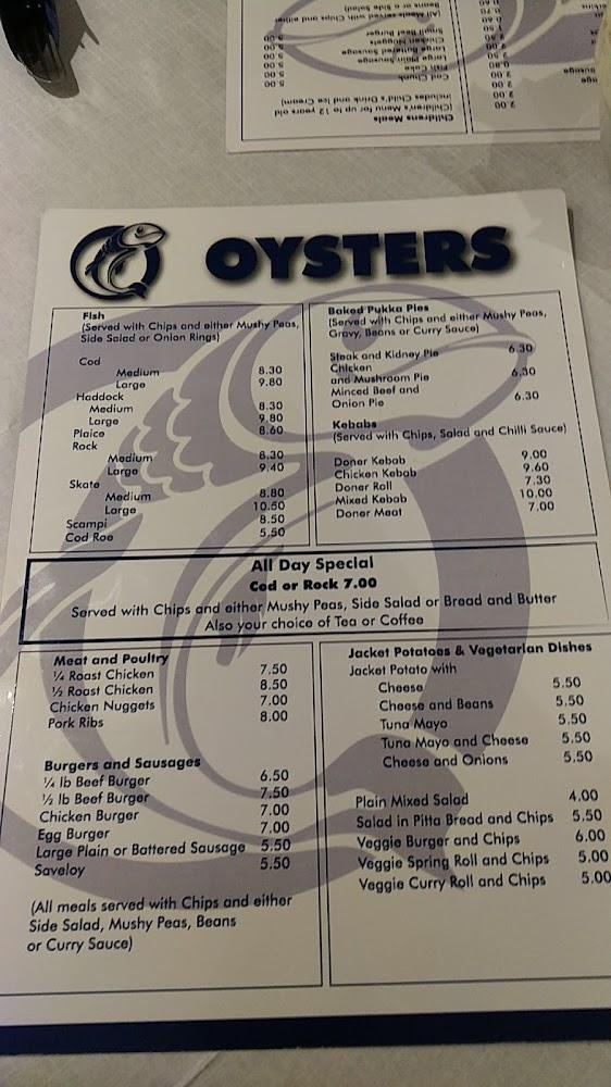 Located just outside Braintree town center, Oysters is hard to miss. The charming spot welcomes both locals and tourists, becoming a community favorite for its delicious offerings. The restaurant proudly presents a clean and simple design, perfect for solo diners or groups alike. Plenty of elderly couples dining in showcases its appeal across generations. The atmosphere is warm and friendly, enhanced by attentive staff who ensure that every visitor feels valued. With a wheelchair-accessible entrance, it's easy for everyone to enjoy a meal here. The setup allows for takeaways, and there is ample parking available nearby, ensuring that Oysters is convenient whether you're having a quick lunch or settling in for dinner.